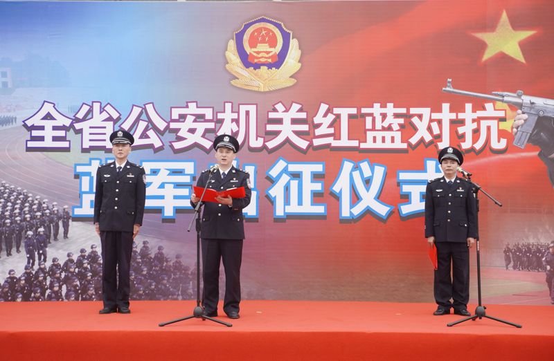 12月10日,省公安厅举行全省公安机关“红蓝对抗”考核蓝军出征仪式。