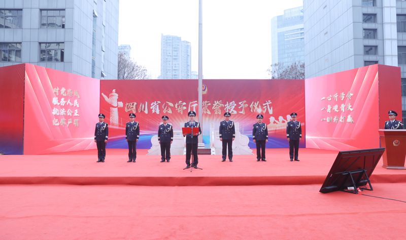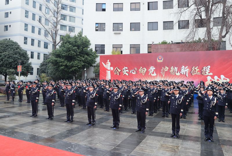 上午9点整,全体民警身着整齐划一的警服,精神抖擞地列队站立。在雄壮的警歌中四个铁一般升起,迎风飘扬,现场全体民警面向警旗,庄严敬礼。“我是中国人民警察,我宣誓……”在副省长、公安厅党委书记、厅长叶寒冰带领下,全体民警举起右手,重温《公安机关人民警察誓词》。