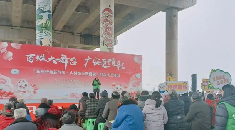 为进一步加大禁毒宣传力度,提高群众识毒、防毒、拒毒的思想意识,1月7日,广安市文化广电旅游局联合广安区禁毒办深入龙安镇革新村,结合“百姓大舞台”活动以禁毒节目汇演、现场宣讲、发放禁毒宣传手册等多种形式,开展了一场别开生面的禁毒宣传活动,筑牢全民禁毒思想防线。