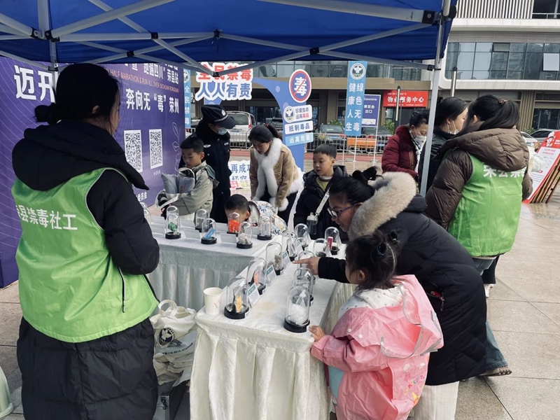 活动起点、沿途、终点精心布置了禁毒宣传点位。民警和禁毒社工们身着禁毒元素的“战袍”,从赛场起点沿途至终点,以横挂禁毒宣传标语,手举禁毒语牌和仿真毒品模型、宣传展板等形式,向参赛人员及现场群众重点普及了依托咪酯、右美沙芬等新列管麻精药品的相关禁毒知识。
