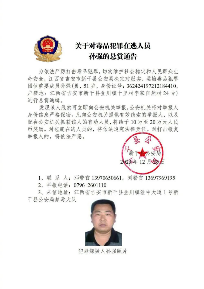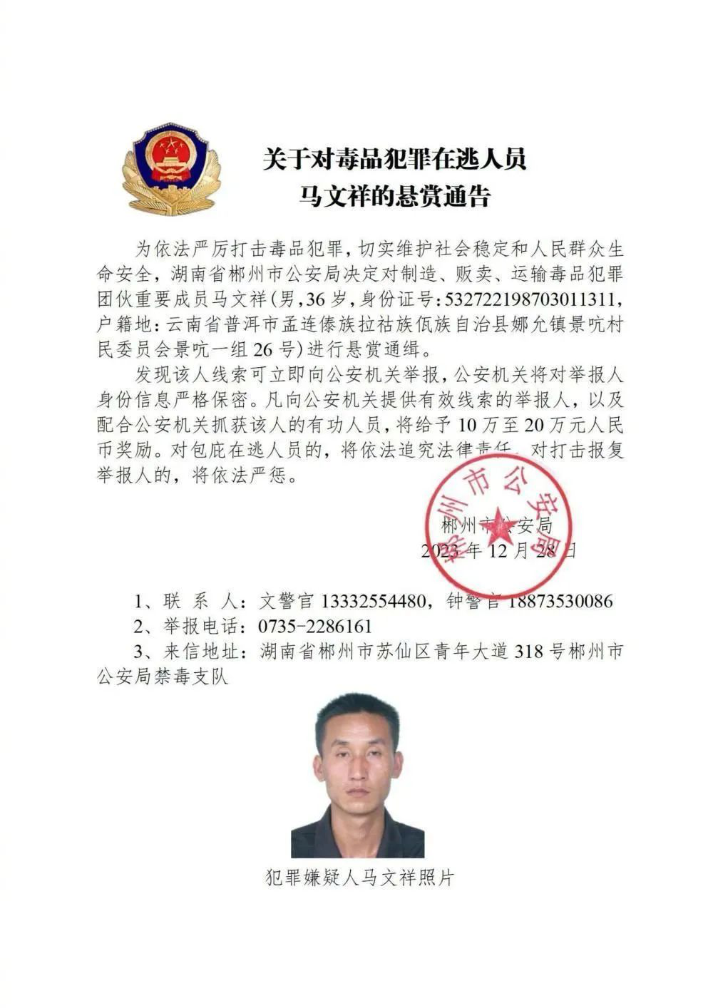 其中,湖南省郴州市公安局决定对张安龙、马文祥、吴玉杨进行公开悬赏通缉;湖南省株洲市公安局决定对杨金梅进行公开悬赏通缉;江西省新干县公安局决定对曾小勇、李国平、孙强进行公开悬赏通缉;浙江省温州市公安局决定对颜欢平进行公开悬赏通缉;四川省遂宁市公安局决定对母朝东进行公开悬赏通缉;贵州省黔东南州公安局决定对龙华进行公开悬赏通缉。