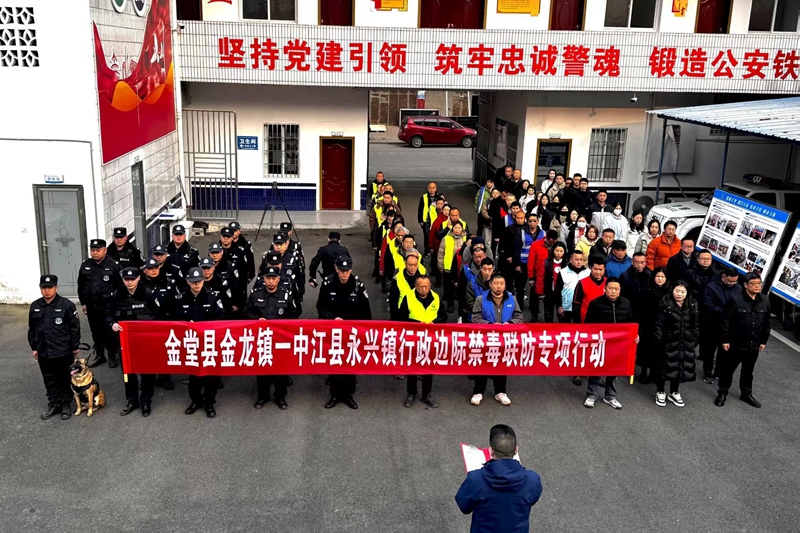 金堂县金龙镇及中江县永兴镇联合开展边际禁毒联防专项行动。通过进场所发放宣传资料,重要道路口设卡排查等行动,不间断地加强对重点场所、部位的排查,进一步强化社会面的治安管控。