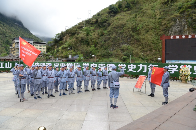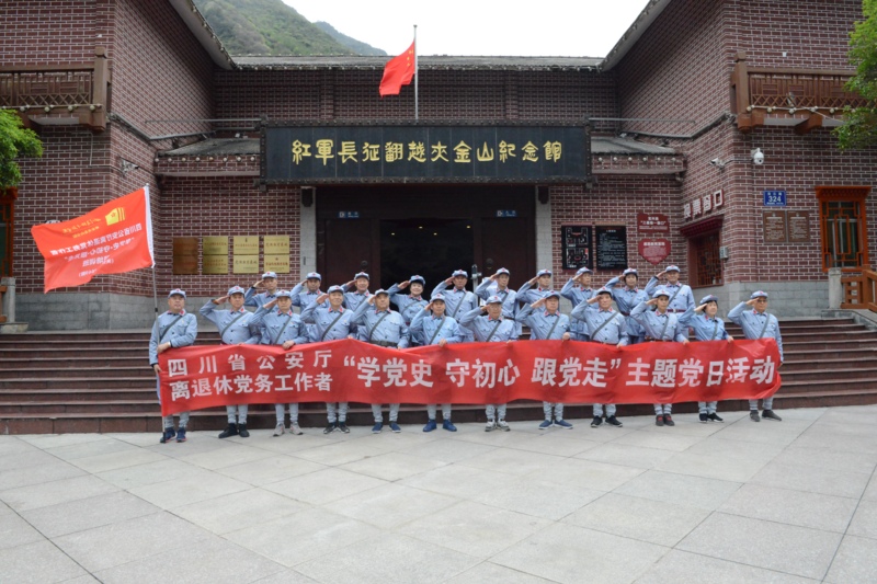 在红军广场,全体学员整齐列队,开展主题党日活动,向长征烈士敬献花篮,重温入党誓词。“随时准备为党和人民牺牲一切,永不叛党!”的宣誓声音,在广场上空久久回响。大家一起参观了红军长征翻越夹金山纪念馆,再一次深入了解红军长征在四川的全过程。经侦总队退休党支部书记郭谦说:“红军烈士经历了常人无法想象的困难,取得了前无古人,后无来者的伟大胜利,没有他们,就没有今天,我们有责任弘扬长征精神,要让长征精神永远传承下去”。