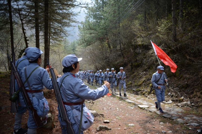 伟大的长征精神是全党全国各族人民不断砥砺前行的强大精神动力。3月31日上午,全体培训学员经过近2个小时车程,来到夹金山下红军小道进行现场教学。86年前红军从这里开始出发艰难北上,翻越长征途中的第一座大雪山。“夹金山,离天三尺三,鸟儿飞不过,凡人不敢攀”。一首民谣唱出了中央红军当年翻越夹金山艰难。在这里全体学员接受了微党课教育《胜利翻越夹金山》。“长征途中平均每300米就有一名红军牺牲,红军将士同敌人进行了600余次战役战斗,跨越近百条江河,攀越40余座高山险峰,其中海拔4000米以上的雪山就有20余座”,一连串惊心动魄的数字,尽显长征行程之艰难、环境之险恶、战斗之惨烈、过程之伟大。在随队教员作誓师动员后,学员们饮下壮行酒和姜汤,挑上担子,扛起弹药箱,步伐坚定地走上红军长征路。在这里,全体学员不仅体会到毛泽东主席“更喜岷山千里雪,三军过后尽开颜”的豪迈之情,更感受到了红军在饥寒交迫、枪林弹雨下取得革命伟大胜利的不易,全体学员发自内心的喊出了“共产党万岁、红军万岁、长征万岁”!科技信息化总队退休党支部书记周兴民激动地说:“理想信念是我们的魂,要永远不忘初心,幸福不忘来时路,没有红军长征就没有我们今天的幸福生活”。
