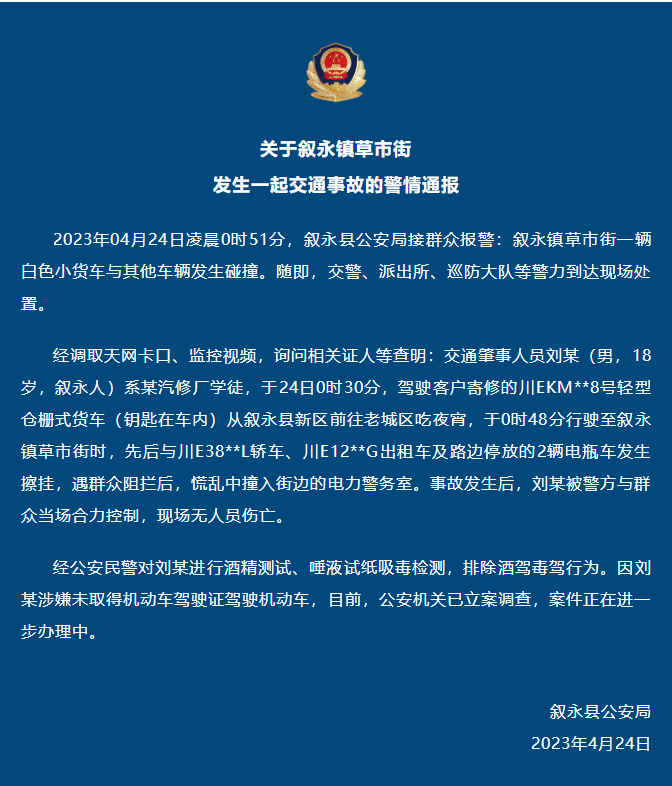 a1257157d50b4598a7ce93fbe2558f60/images/关于叙永镇草市街发生一起交通事故的警情通报.png