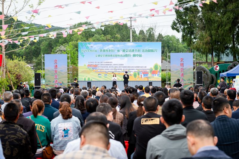 为深入贯彻落实全国、全省公安交管工作会议部署要求,持续推进“文明交通 你我通行”主题建设行动,大力宣传新时代道路交通管理法治建设成效,进一步筑牢农村交通安全防线,4月23日,由四川省公安厅交通警察总队主办,南充市公安局交通警察支队、阆中市人民政府承办的2024年四川省“美丽乡村行”暨“道交法进千村 法治助振兴”交通安全巡回普法宣传活动南充站启动仪式在阆中市天宫镇五龙村举行,当地有关部门、村民及“两站两员”代表等500余人参加了活动,13万网友通过网络直播观看了本次活动。