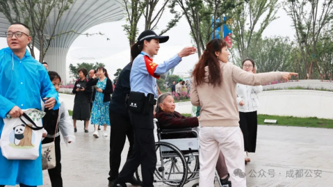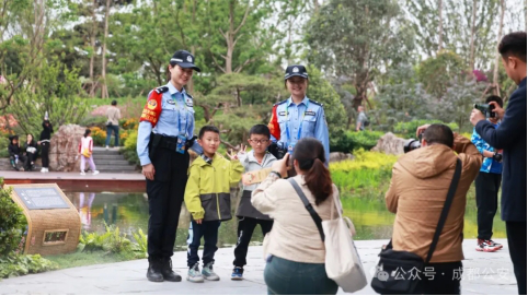 “五一”小长假,2024年成都世界园艺博览会(以下简称世园会)迎来了首波客流量高峰,成都市东部新区公安分局组建的园区警务队,在人群中来回巡逻,贴心服务群众,也成了游客们快门下的一道风景线。
