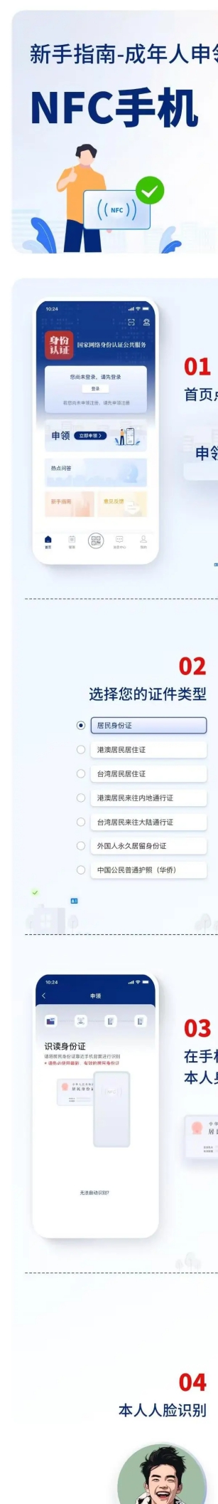 申领需要一部支持nfc功能的手机,应用商店搜索并下载“国家网络身份认证”app,点击“立即申领”,之后就可以按下图指示进行操作。