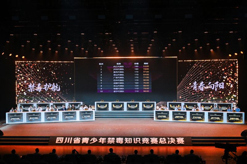本次竞赛由省禁毒委主办,省禁毒办、教育厅、省广电局承办。竞赛现场气氛热烈、亮点纷呈,各代表队精神饱满、奋勇争先,呈现了一场十分精彩的禁毒知识竞赛和一堂“禁毒公开课”。经过全省层层选拔, 22支代表队参加决赛,通过6轮比拼,最终广安代表队获得一等奖,南充、凉山代表队获得二等奖,泸州、内江、巴中代表队获得三等奖。