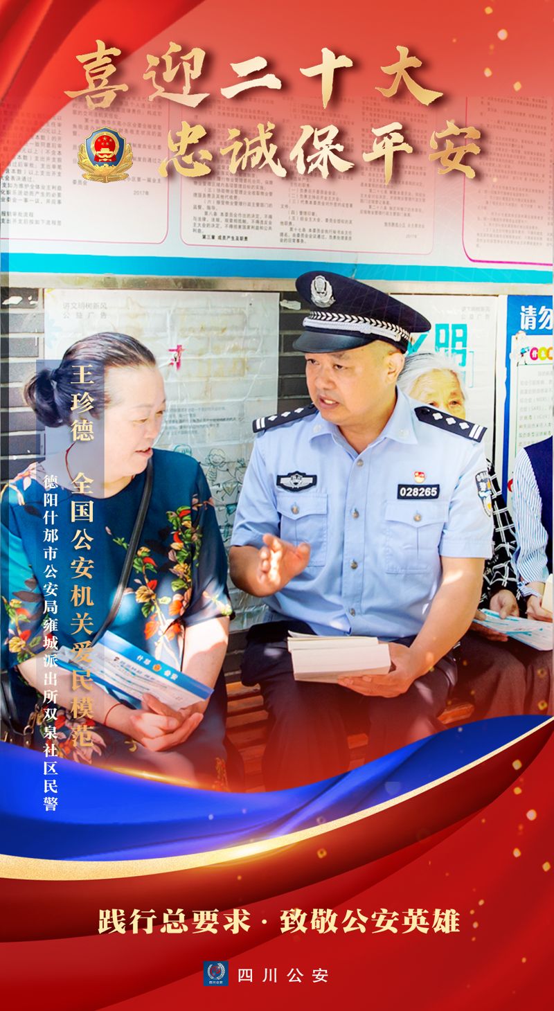 5月25日,全国公安系统英雄模范立功集体表彰大会在北京召开,什邡市公安局雍城派出所民警王珍德获评“全国公安机关爱民模范”。谈到荣誉,王珍德直言,自己干得没怎么轰轰烈烈,只是做了应该做的事儿。