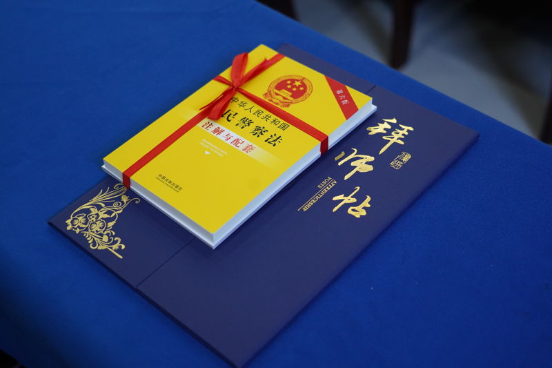 仪式在威武雄壮的《人民公安向前进》歌声中开始,45名新进民警向师父敬献了“拜师帖”,师父回赠了徒弟《中华人民共和国人民警察法》。