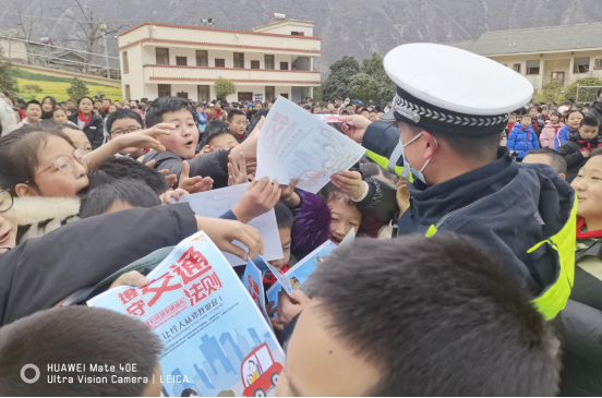 图为阿坝州公安交警深入山区学校开展交通安全宣传